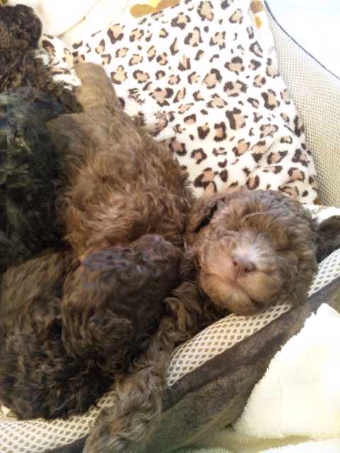 ウリの子供達、まだ目が半分しか開いていません。