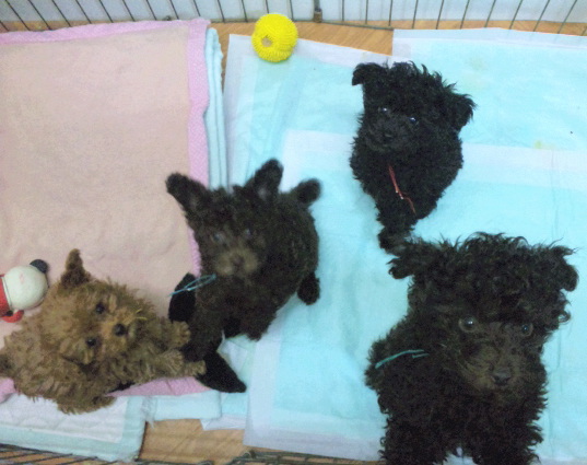 現在、赤ちゃん4頭、1時間程部屋でフリーにさせ、トイレを学んでいるのと、社会勉強中です。