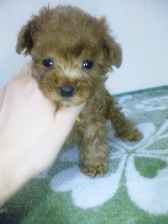 毛色は、レッド。胸に少しだけ白が生えていますが、成長とともに消えると思います。